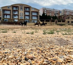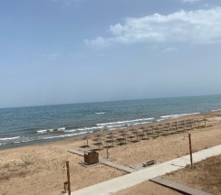 Приятный отель,просторный номер,чисто,свежие продукты на завтрак.Вид из окна на море.Пляж грязный,уборка мусора не производится.от моря несет канализацией