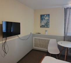 Бронировала мансардный номер на сутки, чтобы отдохнуть в перерыве между парадом, гуляниями в честь Победы и салютом, а потом не толкаться в пробках после него, а спокойно уехать утром домой. Были втроем с детьми. Общее впечатление на троих: идеально. Соотношение цена/качество, в центре города, в пешей доступности.... Просто 🔥. Все для жизни есть. Разовые расходники, шкафчик с достаточным количеством плечиков, бытовая техника.... В общем, дети даже не хотели уезжать))) Нам даже хватило вполне одной кровати.... Правда, пришлось взять из машины подушку для путешествий. Из минусов только лестница, крутовата. Безусловно, с маленькими детками и большими чемоданами карабкаться по ней и спускаться будет неудобно. Нам вполне комфортно было, привыкшие (дома практически такая же на 2 этаж) Очень необычно было слушать чаек прямо над собой (на фото одна из соседок), галдели все утро) Как на природе. Менеджер отеля всегда на связи. В общем, остались довольны, при случае обязательно остановимся здесь ещё 😉