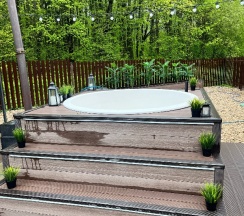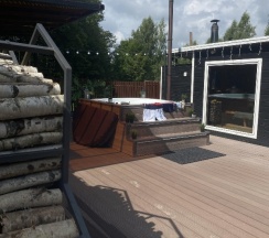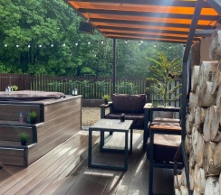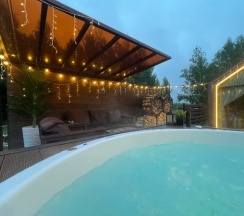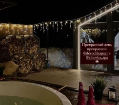 Отдыхали двое суток 2 января, очень понравилось место. Уютный большой дом Звезда, все чистенько. Классное джакузи с баней. Приятный персонал, все подскажут, помогут. Приятно удивил вкусный плов в подарок) Смотрели фильмы под открытым небом в джакузи и наслаждались отдыхом!