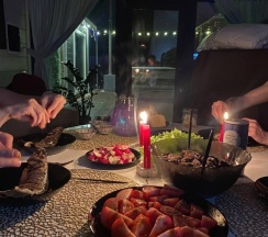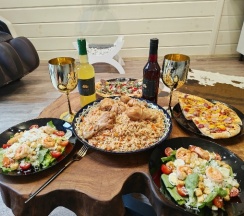 Мы заехали в домик в четверг, у нас был настоящий плов, я много где пробовал плов, но тут мне больше понравился, подача красота а ещё бонус бутылочка вкусного домашнего вина и не одна 🤗, тарелка сначала показалось большой, думали не съедим, а нет, через пару часов плова как и небыло 😆 все съели, спасибо повару!) Отдохнули, расслабились на 100%.