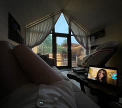 А что ещё круто так в домике есть кресло Ямогучи, я давно хотел попробовать на нём массаж и Отдельное Спасибо Денису, включил нам кресло и мне и девушке, я 15 минут расслаблялся, есть три режима "Антистресс", "Японский", "Бодрость", как побывал в Японии у мастеров массажа, очень понравилось, а после дороги это как никогда просто кайф 🤤 после кресла стал как новенький!)