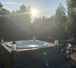 Прекрасное место отдыха от городской суеты. Хороший сервис, есть всё для проживания. Пенсонал внимательный к пожеланиям, клиентоориентированный. Баня и джакузи с подогревом - это просто сказка, впечатления самые востоженные.