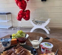 Все супер! Добрались без проблем, нас встретил приятный молодой человек, помог донести вещи, все рассказал, все включил, по акции у нас была огромная тарелка шашлыка с овощами, тарталетки с оливье и морепродуктами, рулетики, сыр и колбасная нарезка! Очень приятным бонусом 2 часа к брони, две бутылки домашнего вина😍 а это мы еще не добрались до бани и джакузи! нам очень все нравится, спасибо большое! Вернемся снова!