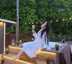 На отдыхе все продумано, вам хочешь и веселье тут и Алиса и в домике и на веранде, а хочешь и светомузыка, джакузи на дровах, баня, купель и что кайф так после бани вышел и под тропический душ, это круто!) А если хочется тишины, так она тут есть, шум деревьев, что успокаивает, спокойно, свежий воздух, а вечером попить чайку и приятные беседы и утром на свежем воздухе а что ещё нужно для отдыха чтобы уехать от городской суеты? Красота ведь! В домике есть холодильник, плита, чайник, кондиционер, горячая вода, душ, столовые приборы, чай, кофе, все есть!) В @elhovka_spa - это восторг!!!