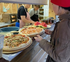 До поселка около 15 минут пешком (можно вызвать такси), там есть пара музеев, продуктовые магазины и кафешки.