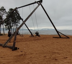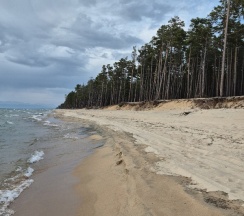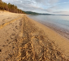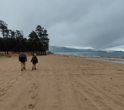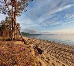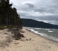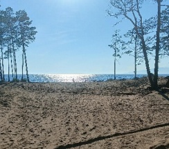 До Байкала около 15 минут пешком, идти придется по песчаным дюнам, поэтому нужно заранее продумывать обувь. Есть другой путь, по накатанной дороге, он немного дольше, но удобнее. Вообще, вокруг отеля очень красивая природа: сосны, песок, сопки. Много интересных птиц, живут зайцы и бурундуки.