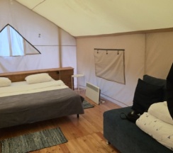 Сначала семьей проживали в сафари-тенте, затем переселились в номер категории «Комфорт». В сафари-тенте было колебание электроэнергии при работе обогревателей+освещение, а так все хорошо; в номере «Комфорт» уютная обстановка, чисто и тепло.