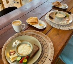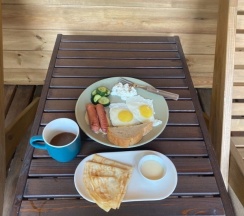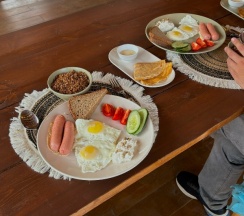Завтрак включён в стоимость, меню разнообразное. Гостям предлагается уютная открытая веранда, кафе с навесом, где утром можно насладиться завтраком на свежем воздухе.⠀