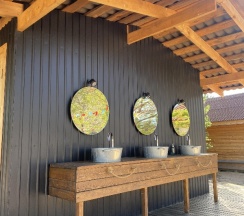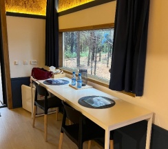 Отдыхали здесь 2 дня в августе в домике, понравился теплый пол и панорамные окна на лес. Общая атмосфера напомнила детский лагерь, нам удалось расслабиться и отдохнуть. Рекомендуем посетить банный комплекс, здесь есть теплая купель, зона отдыха у костра и палатка с сеном!