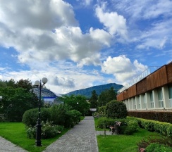Плюсы: свежий ремонт, чисто, уютно, ухоженная территория. Необходимый набор - халаты, тапочки, мыльные и бритвенные принадлежности, чайная станция, холодильник, посуда. В чётных номерах есть выход на улицу через балкон, что очень удобно. Отель расположен ближе к лесу, спокойствие, красота, свежий воздух. На завтраки надо ходить в главный корпус санатория (минут 7), что очень порадовало - утренняя прогулка, красота. Охранники приветливые, заботливые).