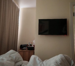 Сам номер уютный, большая кровать, постельное белье и полотенца чистые, были гигиенические принадлежности, тапочки, чай, вода, холодильник, телевизор.
