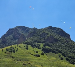 Чудесное место, свежий воздух, невероятно высокие и красивые горы (как в фильме "Аватар"), лошадки и коровки, суслики прикольные бегают рядом. Брали домик в стиле Морокко, всё круто и комфортно. Всем рекомендуем обязательно полетать на параплане, впечатления незабываемые. Активным отдыхающим могу посоветовать пешую экскурсию к скале-кольцу и подъём на обзорную гору (выше парапланов), а также поездку на авто в поселение Эльтюбю (город мертвых). Приготовить еду особо не получится (кроме шашлыков), поэтому кушать лучше в кафе. Немного напрягала дискотека на территории администрации пара планеров до 23 - 23:30 ночи (пятница-суббота). В остальном суперский отдых обеспечен.