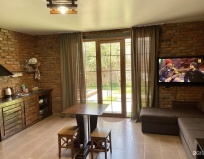 красивая территория, чисто и тихо. есть электрогенератор, так что перебои не страшны. номера выдержаны в стиле лофт, как и говорится в названии. кухня компактная и удобная, посуды достаточно. не хватает только микроволновки.