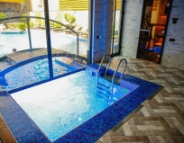 Отличное место расположение, до моря 500 м, до рынка 200 м, в отеле есть бассейн с подогревом воды. Номерной фод, 26 номеров, и 3 апартаменты с видом на бассейн.