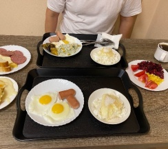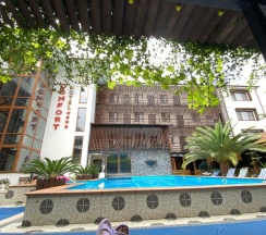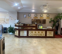 Отдыхали вдвоем с мужем в этом отеле с 30.09 по 07.10. Все очень понравилось! Выбирала я очень долго, но ни разу не пожалела, что остановилась на Комфорте! Название соответствует действительности! При заезде все рассказали очень подробно, сам номер чистенький, все исправно работало. Территория чистая, ухоженная, уютная, есть где посидеть. Вечером загорались гирлянды по всей территории. Бассейн классный, достаточно глубокий, джакузи работает исправно. В баню, бар и ресторан не ходили, не успели. В спортзале современные тренажеры, гантели, есть коврики, мячи, маты, все необходимые принадлежности 👍. Питание отличное, сытно и очень вкусно, нам хватало до ужина. За 7 суток, три раза поменяли постельное белье, каждый день уборка номера, вынос мусора. Мыло, шампунь, гель для душа, туалетная бумага всегда пополнялись. Сейф, телевизор с приставкой, холодильник, фен, халаты, большое зеркало, все присутствовало в номере. Кондиционер не включали ни разу! Очень порадовали зонтики, которые можно взять в пользование бесплатно. Пляж городской рядом, но мы ездили всегда на Мокко от рынка. Рынок в 3 минутах ходьбы. Рядом продуктовый магазин Кормилица, где есть все. Доброжелательное отношение сотрудников 👍. Минусов не нашли, да и не искали. Однозначно еще вернемся! Вы лучшие!!!! 💕💕💕