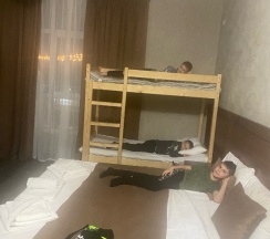Благодарю отель Олимп за гостеприимство. Не большой, но уютный. В номере все предусмотрено: большая кровать, двухъярусная кровать для детей, кондиционер, холодильник, телевизор, фен, чистые полотенца и постельное белье. В ходе есть гладильная доска. Предусмотрено питание.