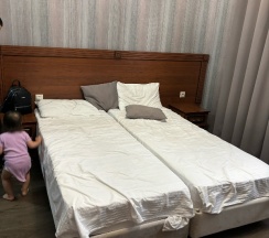 Прилетели раньше времени заселения, управляющая нас без вопросов заселила. Дети сразу пошли купаться в бассейн. Отель чистый, современный, все удобства в номере имеются. Дети спали на двухярусной кровати, для них это было интересно и необычно. Бесплатный WI-FI, трансфер до моря, выдача пляжных полотенец, зона для приготовления шашлыка. Всё на высшем уровне. Отель рекомендую. Твердые 5 звезд.