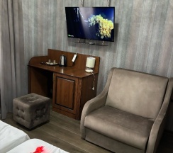 Хороший маленький отель. Заселили без проблем чуть раньше времени. Номер чистый , уютный,белоснежное белье и полотенца. На территории есть бассейн , для отдыха у бассейна предусмотрены специальные полотенца лежат в свободном доступе. Так же для гостей есть зонтики на случай дождя и различные бытовые мелочи ( аптечка с необходимыми лекарствами , крем для загара, средства по уходу за обувью ) Можно воспользоваться прачечной . Предусмотрен трансфер к морю. Олимпийский парк , Сочи парк в пешей доступности. Отдельно хотелось бы отметить вкусное питание ! Персонал приветливый ! Хотели пожить в разных районах Сочи , но в итоге продлили проживание здесь. Двухместный номер при необходимости превращается в трехместный , правда в этом случае шкаф не откроется . Но на то он и двухместный ! За свои деньги отличный вариант.