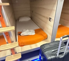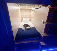 Хороший бюджетный вариант «на передохнуть». Не так просто найти отель, так как нет никаких знаков-указателей, приходилось спрашивать у сотрудников дорогу. Капсула оснащена постельным бельем и зарядкой для телефона, было бы не плохо подвесить небольшую полочку для телефона и мелких принадлежностей. Есть душ, предоставляются тапочки и полотенце, однако средства гигиены отсутствуют и приобрести на стойке нет возможности, так же как и простую бутылку воды. Так что все берите с собой. Слышимость очень хорошая, голоса новых гостей отчетливо слышны в капсуле. Запасайтесь берушами в том числе, надеюсь, поможет.