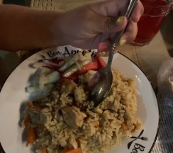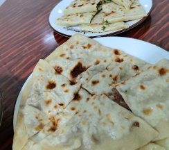 Питание- завтраки входят в оплату путёвки. Утром предоставляют несколько видов каш, сыр, ветчина, яйца, кофе, чай. Обеды и ужины были по индивидуальному заказу!!!. За это время мы попробовали несколько национальных блюд: хинкал, лагман, плов, чуду с разными начинками, гюрзе, манты. Всё было приготовлено золотыми руками Басират, которая в свои блюда вкладывает душу! ❤