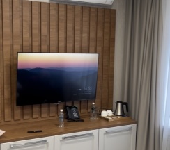 Хороший, уютный, чистый отель 😍 в номере есть всё необходимое, а если вдруг чего-то не нашлось принесут в номер в ближайшие минуты (например, после звонка на ресепшен нам через 7 минут принесли гладильную доску и утюг). Локация очень классная, рядом и море и парки и вкусные заведения и вокзал, чтобы легко добраться на ласточке до красной поляны!
