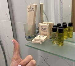 Начну с плюсов: расположение отеля - на 100 из 10, тихая улица без шумных ресторанов (а вот в самом номере слышимость отличная, соседей слышно со всех сторон), всё рядом, до вокзала 10 минут, до моря рукой подать. В номере чисто, постель и полотенца в порядке, есть тапочки, шампунь, гель для душа, зубной набор, чайник, чашки, чай, вода (приносят каждый день, это плюс!)