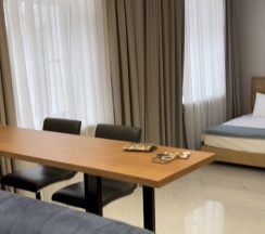 Удобное расположение отеля - в центре Сочи. Очень уютный, чистый номер. Ежедневная уборка, смена полотенец. Есть всё необходимое. Если что-то нужно, решается всё быстро. Брали полупансион, кухней остались очень довольны. Еда вкусная, разнообразная.