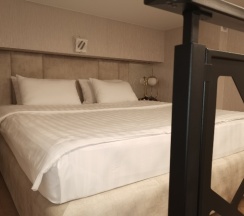 Хороший отель целом, хорошая кухня при отеле, бюджетная. Стоило бы поухаживать за мебелью (нужна химчистка), в вентиляцию слышно улицу, в душевых кабинах неправильно установлена дверь и уплотнители ( вода льется на пол). Хорошие матрасы. В двух уровневом номере кондиционер не справляется)