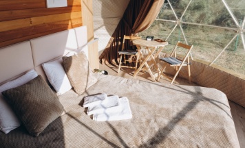 Уникальный вариант проживания под небом. Панорамный вид на невероятные закаты и утренние туманы над рекой – то, что делает Сферу очень привлекательной для уединенного романтичного отдыха. Предполагает размещение до 4х человек.