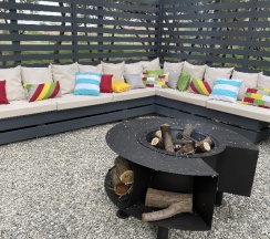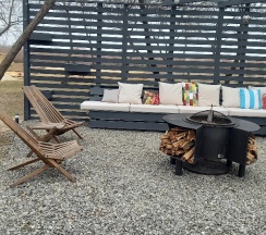 Очень атмосферно! Всё очень понравилось! Тихое приятное место. Двор ухоженный. У каждого домика свой BBQ. Общий бассеин, шезлонги. Есть баня. Костровая зона просто супер.