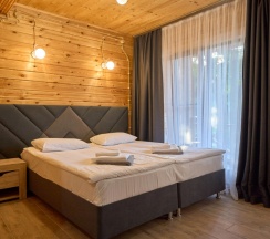 Хорошее место для новогодних праздников, особенно с детьми. Хорошие завтраки. Сюда конечно нужно приезжать за тишиной и умиротворением. Для меня останется незабываемым сон под звуки горной реки и чистый воздух, о чем ещё мечтать городскому жителю?! Понравилось что можно заселяться с животными, у меня собачка спокойная. На территории есть вольер с оленями, единственное пожелание сделайте им пожалуйста вольер побольше