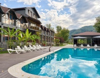 Классно отдохнули, вкусные завтраки, в кафе очень вкусно готовят, бассейн очень тëплый, красивый втд из номера на реку, все остались довольны, приедем к вам на новый год))