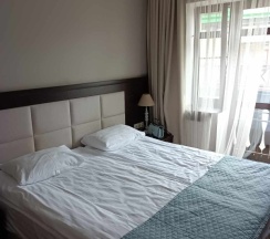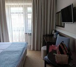 Отличный отель. Расположен в прекрасном месте в центре города. Номер стандарт вместительный, большой шкаф, новый ремонт. В номере есть всё необходимое, чайник, шашки, чай, халат. Убираются в номере каждый день. Есть кондиционер. Однозначно рекомендую.