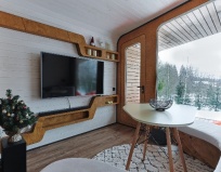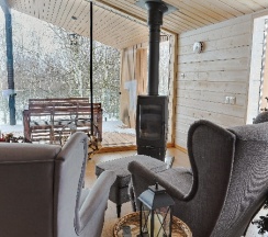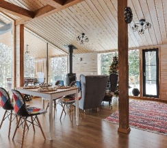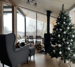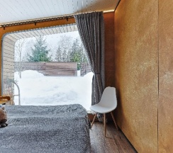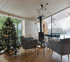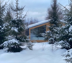 Очень тихое и живописное место. Есть всё необходимое для проживания. За несколько минут прогулки по лесу можно дойти прямо до водохранилища 😍 Зимний бонус - заснеженные ели, на которые открывается вид из панорамного окна 🙌