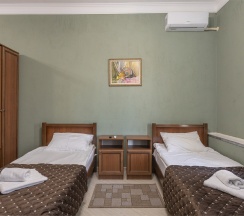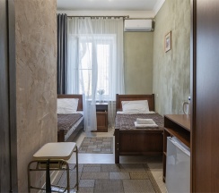 Уютный двухместный номер с большой кроватью – классический выбор для комфортного отдыха. Здесь есть все необходимое: удобные кровати, чайный набор, ванная комната, , тапочки и свежие полотенца для вашего удобства.
