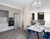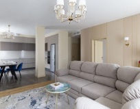 Внешний вид абсолютно неприметный, внутри стильно. Уютный интерьер, удачная планировка номера с тремя спальнями, для семьи с двумя детьми в самый раз!
