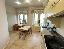 Есть большая кухня- бед проблем удобно и легко себе приготовить покушать . Также отпариватель - привести вещи в порядок с дороги.