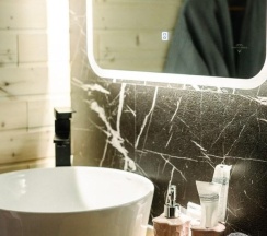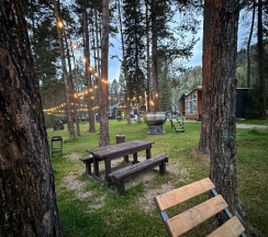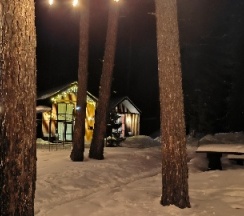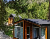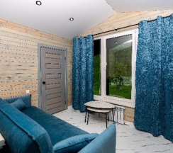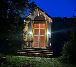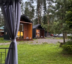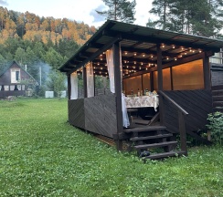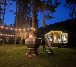 База очень классная! Красивые, уютные и теплые домики, шикарный вид на речку и горы. В нашем домике было все необходимое:посуда, большой холодильник, телевизор, обогреватель, мощный фен. Вечером на базе красиво горят фонарики, ими украшены домики и территория. Хозяева вежливые и доброжелательные люди. Впечатления от данной базы самые наилучшие!