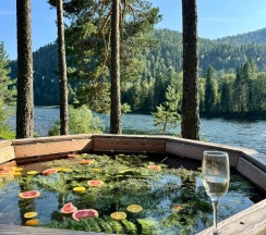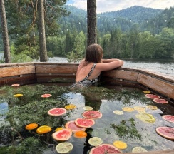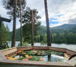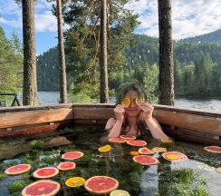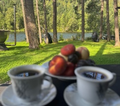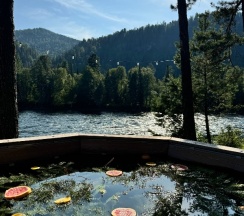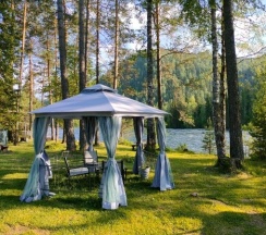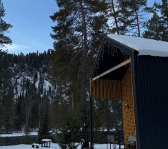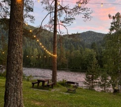 Сильно понравилось месторасположение базы,ооочень тихо и красиво,прямо на берегу реки. Зеленая ухоженная территория,шезлонги, качели,фонарики) ну вообщем все очень атмосферно)) Очень теплые дома с теплым полом. В домиках есть все для приготовления пищи и даже кофе машина,так что можно покайфовать на веранде либо на берегу с кофейком ☕️. Хозяйка базы,Елена,очень приветливая,все рассказала где поесть,попить,какие экскурсии посетить и даже увезла и привезла нас с экскурсии на своей машине. Так что если ищите тишины и покоя,вам сюда 😊