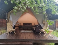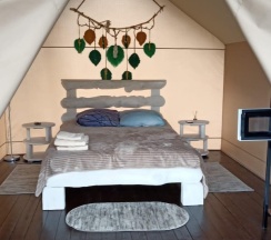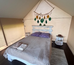 Замечательное место, уютно и по - домашнему. Отдыхали с детьми, им было весело) Немного мешал дятел по утрам😂 а так все прекрасно, в тентах чистенько, есть все необходимое. Добрые и приветливые хозяева☺️