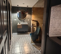 Очень приятное место, уютный дом, большая придомовая территория с детскими качелями, мангальной зоной и местом для отдыха на улице, где можно посидеть, отдохнуть в семейной или дружеской компании. Мы были с собакой - территория полностью огорожена забором. Очень доброжелательные хозяева, готовые всегда вам помочь. Всем рекомендую, для пар и семей с маленькими детьми или домашними питомцами — вообще идеально.