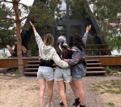 Отдыхали небольшой компанией друзей. Есть зоны для красивых фотографий. Домик очень уютный, ничего лишнего. Хозяйка приятная, отзывчивая, отвечала на любой появившийся вопрос. Рекомендую!