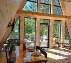 Это место превзошло все ожидания! Просторный, чистый домик с современной стильной обстановкой — продуманная организация пространства, удобные спальные места, панорамные окна с видом на лес создают ощущение уюта и комфорта. Здесь есть всё для идеального отдыха!