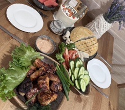 А вокруг — тишина, наполненная шелестом листьев, кристально чистый воздух и умиротворение. Утро начиналось с ароматного чая на террасе, а вечером — расслабление в джакузи под открытым небом, где можно любоваться звёздами. Особое удовольствие — готовить шашлык на мангале и наслаждаться ужином в уютной обеденной зоне.