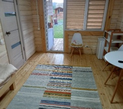 На территории три домика, есть мангал, бассейн, батут. В домике все необходимое для проживания, душ и туалет в домике, свежий ремонт, всё чисто. Из минусов: в домике холодно даже летом, если бы не маленький обогреватель, то мы бы очень замёрзли спать, присутствуют муравьи, за вечер очень много раз отключали электричество, шумоизоляции нет от слова совсем, на улице слышно то, что происходит в домике. В остальном всё хорошо