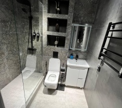 замечательный совмещенный санузел с душем и полотенцесушителем.