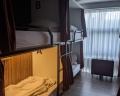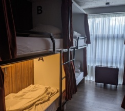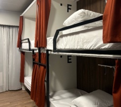 Хостел порадовал современным дизайном, чистотой, просторными общими комнатами. На кухне вся техника для приготовления пищи в наличии, в прачечной стиральная и сушильная машина, гладильная доска и утюг, в зоне отдыха огромный тв, можно посмотреть кино, можно поиграть, настольные игры, книги, в каждом помещении есть кондиционер. Порадовало что санузлы отдельно в женской и мужской половине, душевые-это изолированные комнаты с зеркалом, раковиной, душем, феном. В комнатах много розеток, в спальном месте отличный матрас и подушка, постельное белье идеально белое, спальное место можно прикрыть шторами, также есть индивидуальное освещение и шкаф для одежды и отдельный шкаф для обуви.