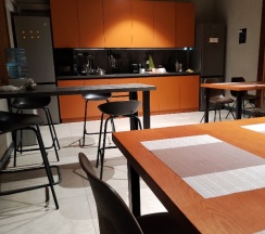 Очень большое общее пространство, есть большой телевизор, компьютер, большая кухня с двумя холодильниками. Проживающие все адекватные, залётных не было.