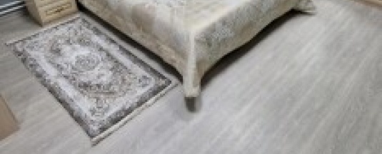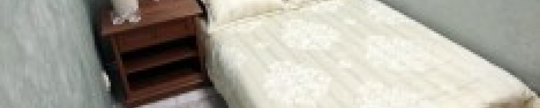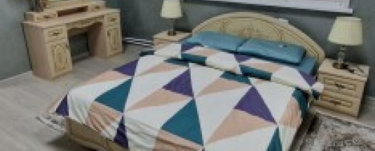 Большая комната, в ней огромная кровать и новая мебель. Большой шкаф, туалетный столик, все с претензией на дорого, с позолотой. Небольшой холодильник, настольная лампа.