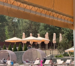 Отличное место, останавливались в Хвое в июле, очень порадовал приветливый персонал, для детей на улице есть бесплатные самокаты, бадминтоны, мячики, шарики, также предусмотрена детская площадка среди хвойных деревьев , также можно покататься на качелях с детьми) . Открытый большой бассейн, вода подогревается до 28 градусов - очень порадовало! Вкусная еда в ресторане и аква баре. Завтраки - шведский стол, все самое главное есть, многие писали про кофе машину, что она не справляется, но ведь есть бармен 😅, каждое утро заказывали у него кофе на завтрак и все было отлично)